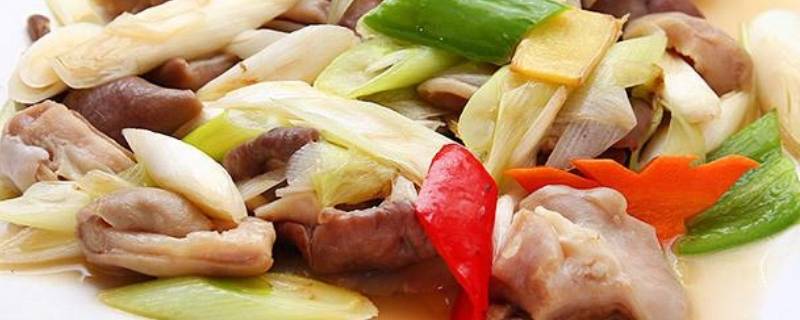 卤猪肚切抹刀片,青、红椒切菱角片,大葱切斜刀片。