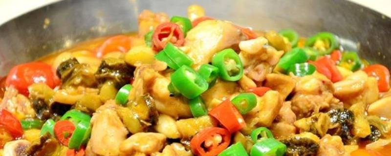 6、下鸡块翻炒出水分出香味,鸡皮微微发卷。