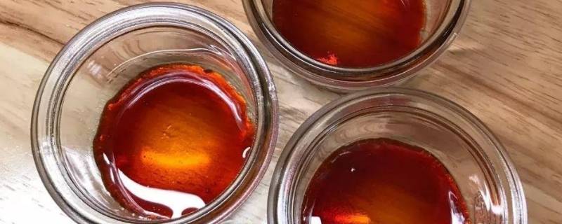 金黄色慢慢越变越深,色如琥珀时离火,趁热倒入热开水,一边加水一边搅拌。