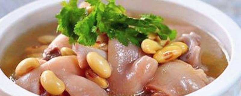 食材:猪脚500克、黄豆适量、花生适量、枸杞适量、杏鲍菇适量、红枣适量、姜3片、料酒适量、盐适量。