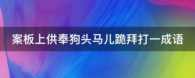 案板上供奉狗头马儿跪拜打一成语是马首是瞻,因为马儿跪拜与马首是瞻是一个意思。成语是汉语词汇中定型的词。成语,众人皆说,成之于语,故成语。成语多为四字,亦有三字、五字甚至七字以上。成语是中国传统文化的一大特色,有固定的结构形式和固定的说法,表示一定的意义,在语句中是作为一个整体来应用的,承担主语、宾语、定语等成分。成语有很大一部分是从古代相承沿用下来的,它代表了一个故事或者典故。有些成语本就是一个微型的句子。成语又是一种现成的话,跟习惯用语、谚语相近,但是也略有区别。