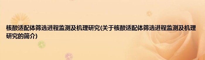 本文关于核酸适配体筛选进程监测及机理研究的简介就讲解完毕,希望对大家有所帮助。