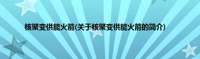 本文关于核聚变供能火箭的简介就讲解完毕,希望对大家有所帮助。