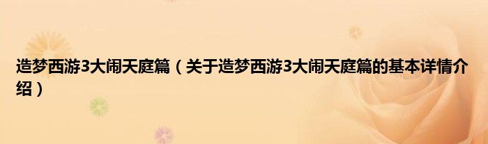 造梦西游3大闹天庭篇(关于造梦西游3大闹天庭篇的基本详情介绍)