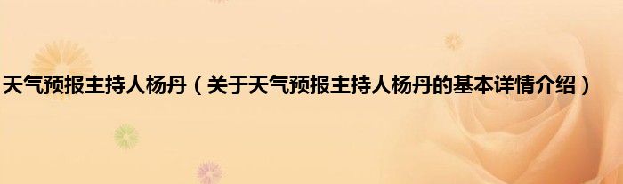 本文关于天气预报主持人杨丹的基本详情介绍就讲解完毕,希望对大家有所帮助。