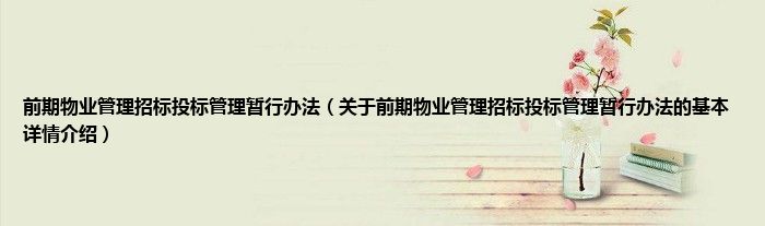 本文关于前期物业管理招标投标管理暂行办法的基本详情介绍就讲解完毕,希望对大家有所帮助。