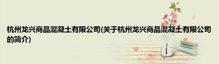本文关于杭州龙兴商品混凝土有限公司的简介就讲解完毕,希望对大家有所帮助。
