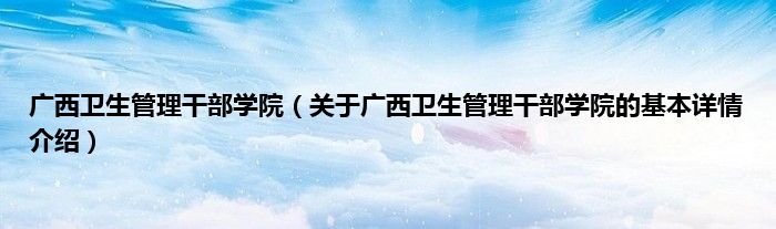 本文关于广西卫生管理干部学院的基本详情介绍就讲解完毕,希望对大家有所帮助。