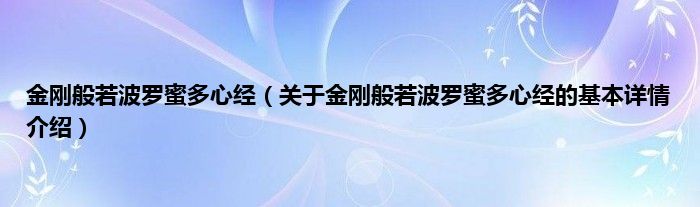 本文关于金刚般若波罗蜜多心经的基本详情介绍就讲解完毕,希望对大家有所帮助。