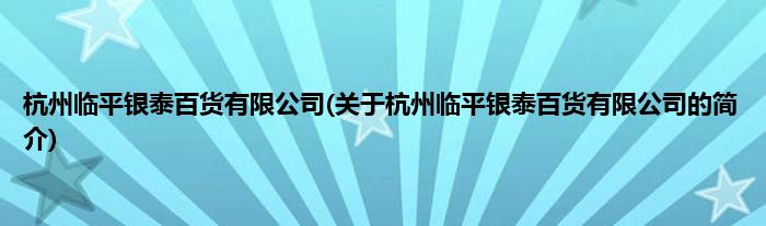 本文关于杭州临平银泰百货有限公司的简介就讲解完毕,希望对大家有所帮助。