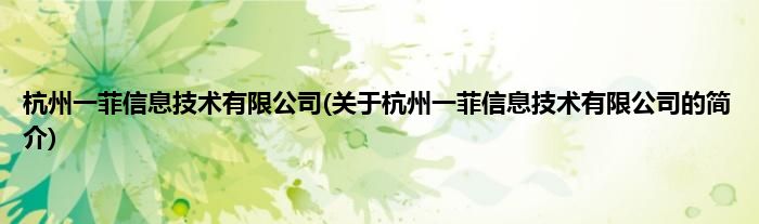 本文关于杭州一菲信息技术有限公司的简介就讲解完毕,希望对大家有所帮助。