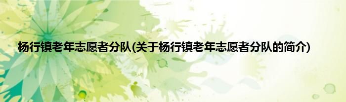 1、 杨行镇老年志愿者分队是由宝山区老年志愿者大队领导下的志愿团体。
