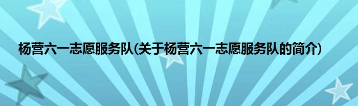 大家好,杨营六一志愿服务队,关于杨营六一志愿服务队的简介很多人还不知道,现在让我们一起来看看吧!