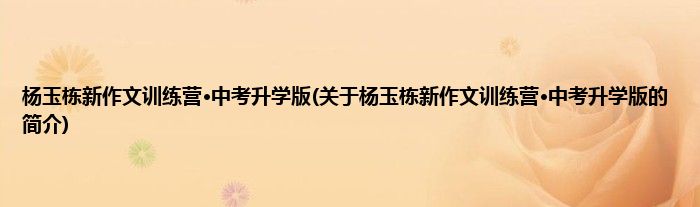 大家好,杨玉栋新作文训练营·中考升学版,关于杨玉栋新作文训练营·中考升学版的简介很多人还不知道,现在让我们一起来看看吧!