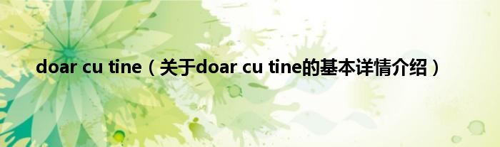 大家好我是小蝌蚪,doar cu tine,关于doar cu tine的基本详情介绍很多人还不知道,那么现在让我们一起来看看吧!