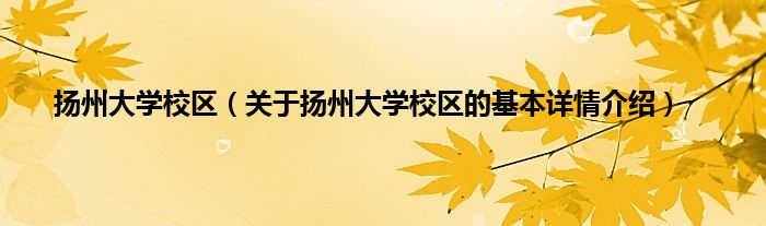 扬州大学校区(关于扬州大学校区的基本详情介绍)