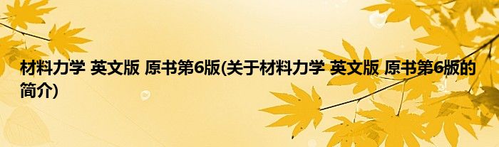 大家好,材料力学 英文版,原书第6版,关于材料力学 英文版,原书第6版的简介很多人还不知道,现在让我们一起来看看吧!