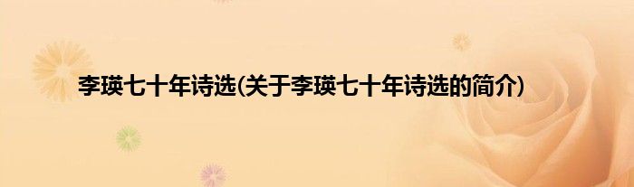 本文关于李瑛七十年诗选的简介就讲解完毕,希望对大家有所帮助。
