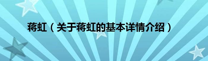本文关于蒋虹的基本详情介绍就讲解完毕,希望对大家有所帮助。