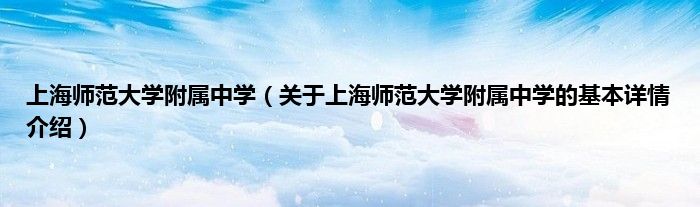 本文关于上海师范大学附属中学的基本详情介绍就讲解完毕,希望对大家有所帮助。