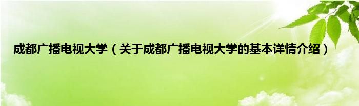 本文关于成都广播电视大学的基本详情介绍就讲解完毕,希望对大家有所帮助。