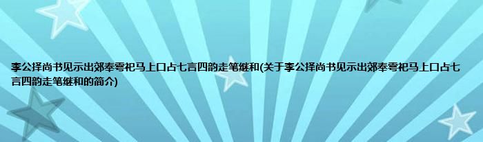 本文关于李公择尚书见示出郊奉雩祀马上口占七言四韵走笔继和的简介就讲解完毕,希望对大家有所帮助。