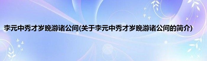 本文关于李元中秀才岁晚游诸公间的简介就讲解完毕,希望对大家有所帮助。