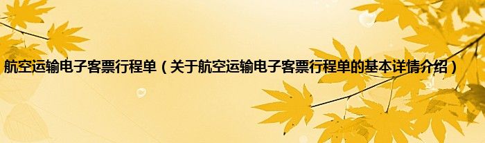 航空运输电子客票行程单(关于航空运输电子客票行程单的基本详情介绍)