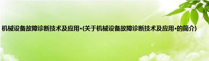 本文关于机械设备故障诊断技术及应用·的简介就讲解完毕,希望对大家有所帮助。