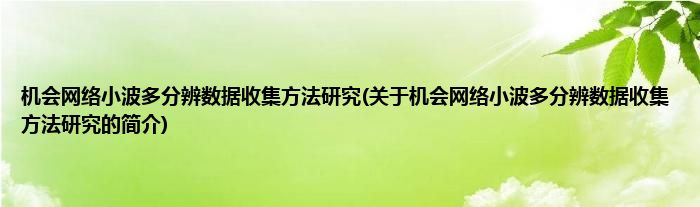 大家好,机会网络小波多分辨数据收集方法研究,关于机会网络小波多分辨数据收集方法研究的简介很多人还不知道,现在让我们一起来看看吧!