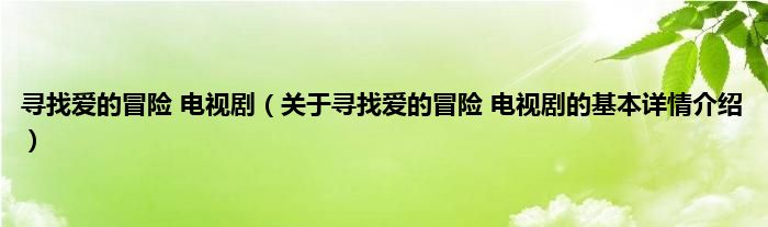 本文关于寻找爱的冒险 电视剧的基本详情介绍就讲解完毕,希望对大家有所帮助。