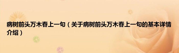 本文关于病树前头万木春上一句的基本详情介绍就讲解完毕,希望对大家有所帮助。