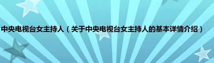 本文关于中央电视台女主持人的基本详情介绍就讲解完毕,希望对大家有所帮助。