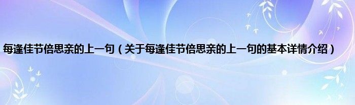 本文关于每逢佳节倍思亲的上一句的基本详情介绍就讲解完毕,希望对大家有所帮助。