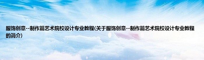 本文关于服饰创意--制作篇艺术院校设计专业教程的简介就讲解完毕,希望对大家有所帮助。