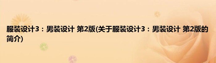 大家好,服装设计3:男装设计 第2版,关于服装设计3:男装设计 第2版的简介很多人还不知道,现在让我们一起来看看吧!