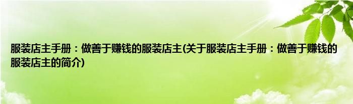 本文关于服装店主手册:做善于赚钱的服装店主的简介就讲解完毕,希望对大家有所帮助。