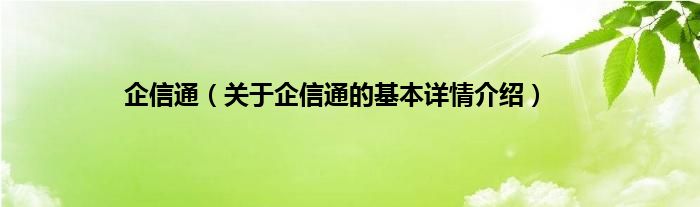 本文关于企信通的基本详情介绍就讲解完毕,希望对大家有所帮助。