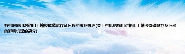 本文关于有机肥施用对稻田土壤胶体磷赋存及运移的影响机理的简介就讲解完毕,希望对大家有所帮助。