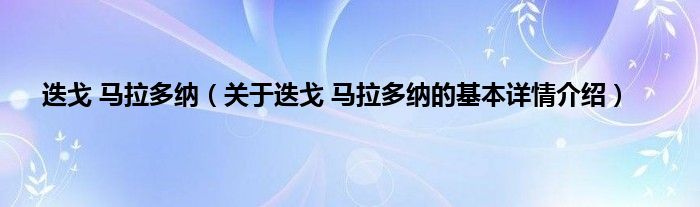 迭戈 马拉多纳(关于迭戈 马拉多纳的基本详情介绍)