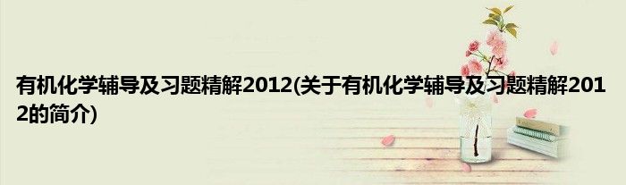 本文关于有机化学辅导及习题精解2012的简介就讲解完毕,希望对大家有所帮助。