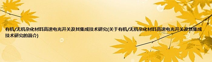 本文关于有机/无机杂化材料高速电光开关及其集成技术研究的简介就讲解完毕,希望对大家有所帮助。