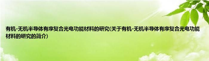 本文关于有机-无机半导体有序复合光电功能材料的研究的简介就讲解完毕,希望对大家有所帮助。