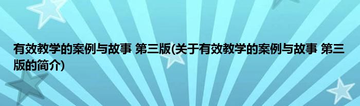 本文关于有效教学的案例与故事 第三版的简介就讲解完毕,希望对大家有所帮助。