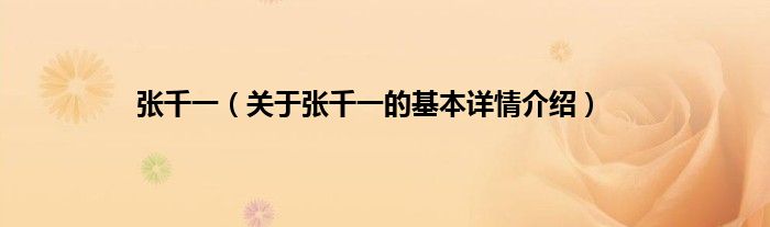 张千一(关于张千一的基本详情介绍)