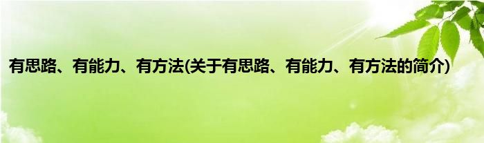 有思路、有能力、有方法(关于有思路、有能力、有方法的简介)