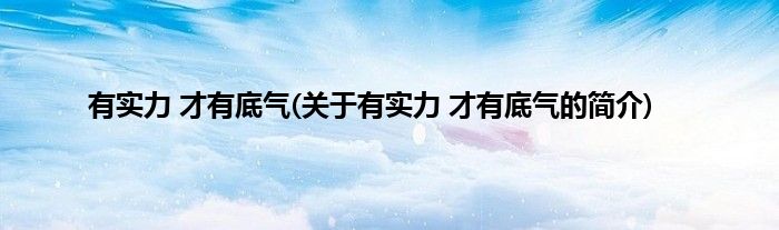 本文关于有实力,才有底气的简介就讲解完毕,希望对大家有所帮助。