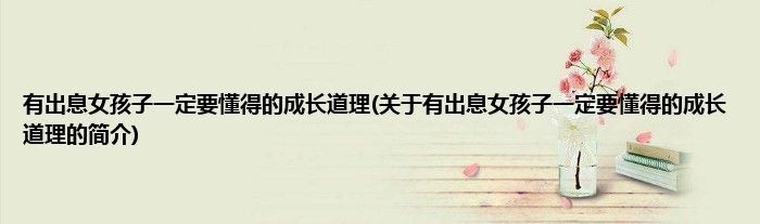 本文关于有出息女孩子一定要懂得的成长道理的简介就讲解完毕,希望对大家有所帮助。