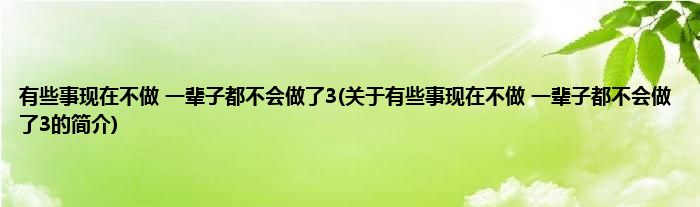 本文关于有些事现在不做,一辈子都不会做了3的简介就讲解完毕,希望对大家有所帮助。