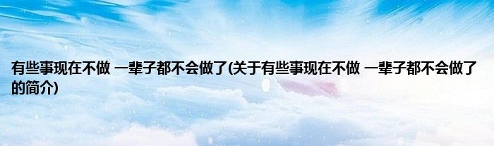 本文关于有些事现在不做,一辈子都不会做了的简介就讲解完毕,希望对大家有所帮助。